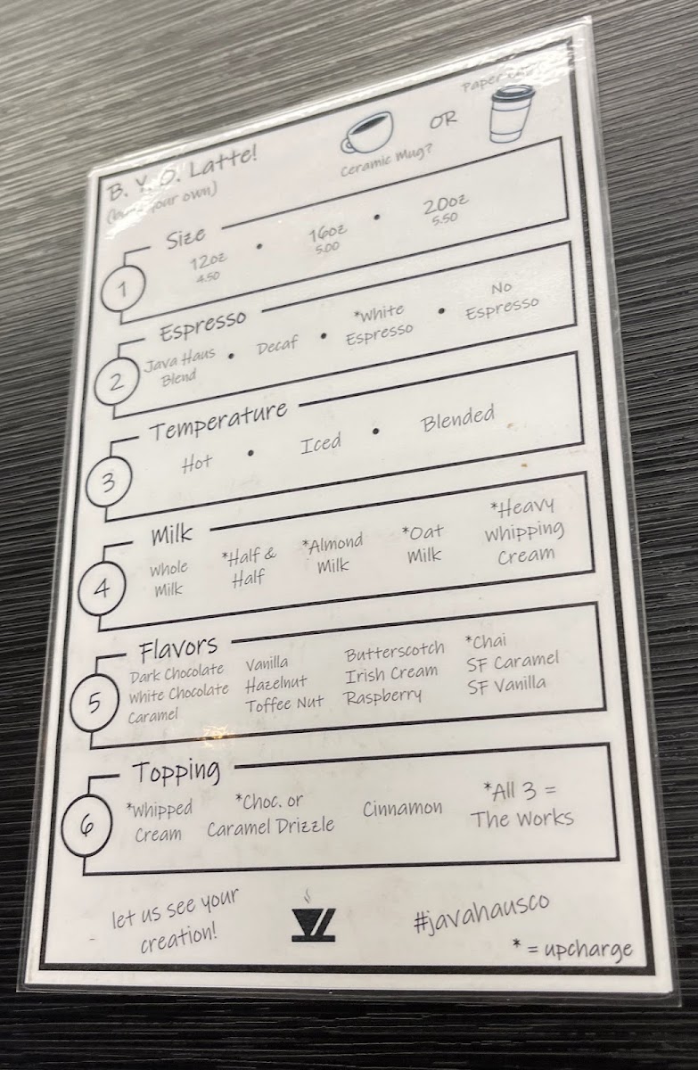 Whether you're looking for a comforting warm drink, a refreshing iced option, or a sweet pastry to accompany your coffee, Java Haus Co has a menu that caters to all tastes.